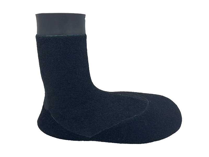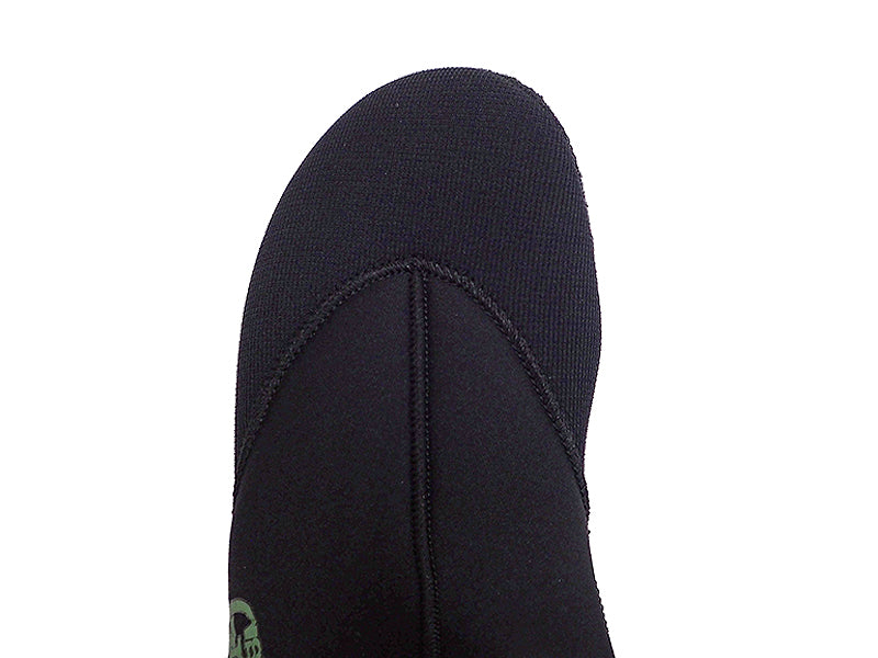 内側に使用している起毛素材「thermo BLUE」は、軽く伸縮性と保温性に優れ、さらに速乾性を兼ね備えたマテリアルで、5mm厚のつま先ラウンドタイプは究極のウィンターソックスといえます。