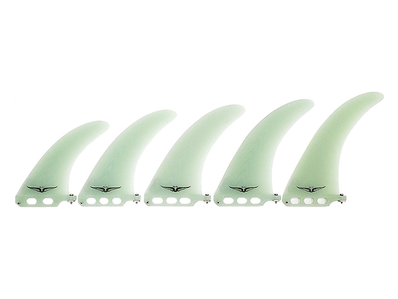 スキップ・フライがデザインしたシングルフィン。スキップのデザインは、トリムとグライドに重点を置いています。